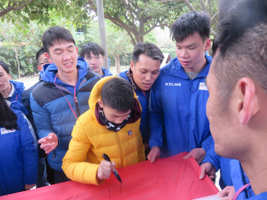 在破冰起航活動(dòng)中,我們的同事分成兩個(gè)小隊(duì),每個(gè)小隊(duì)各自起隊(duì)名和口號(hào),讓同事們迅速理解并融入培訓(xùn)環(huán)境中來,形成團(tuán)隊(duì)感,確保之后的項(xiàng)目有序、高效、安全的進(jìn)行。