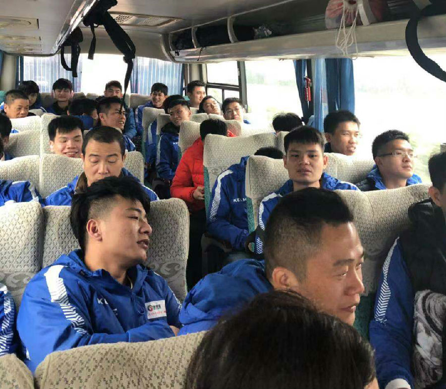 8時(shí)許,大家坐上大巴車,前往拓展基地,一路上歡歌笑語,雖然數(shù)九寒天,但絲毫不影響伙伴們集體出行的舒暢心情。