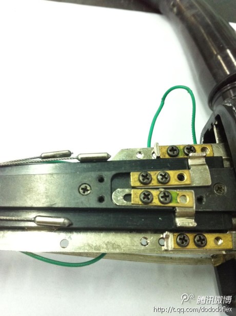 操作部的零部件13:富士能軟鏡的調角度裝置。該裝置是利用拉桿的原理來實現(xiàn)角度的調整。松開三顆螺絲,把拉桿拉長,角度變??;把拉桿推進去,角度變大。調整完擰緊螺絲。